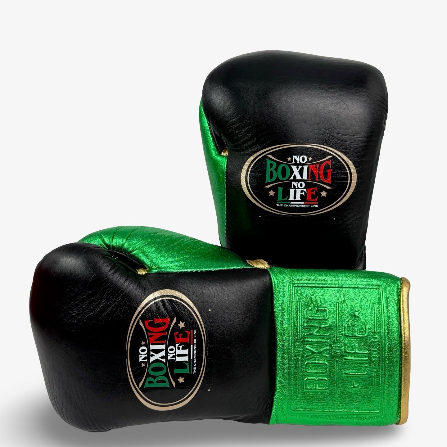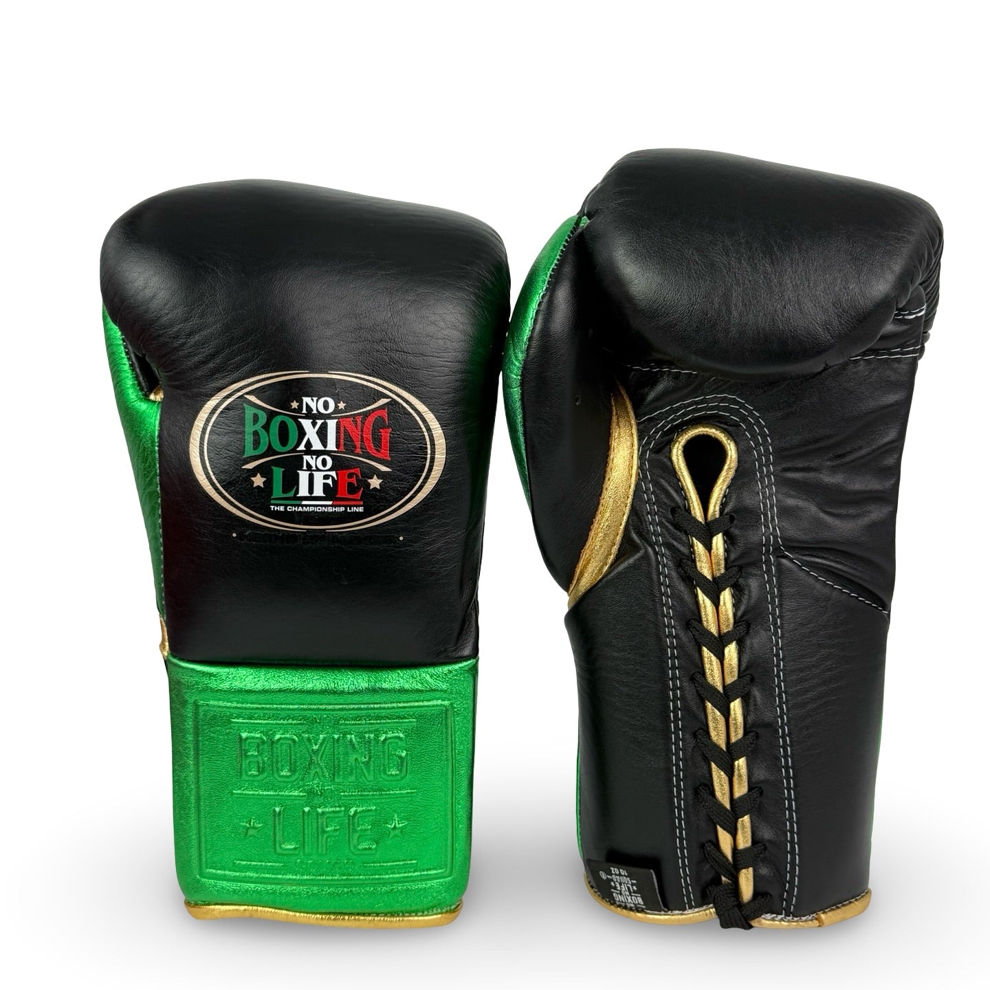No Boxing No Life Fight Gloves - Black/ Metallic Green/ Metallic Gold