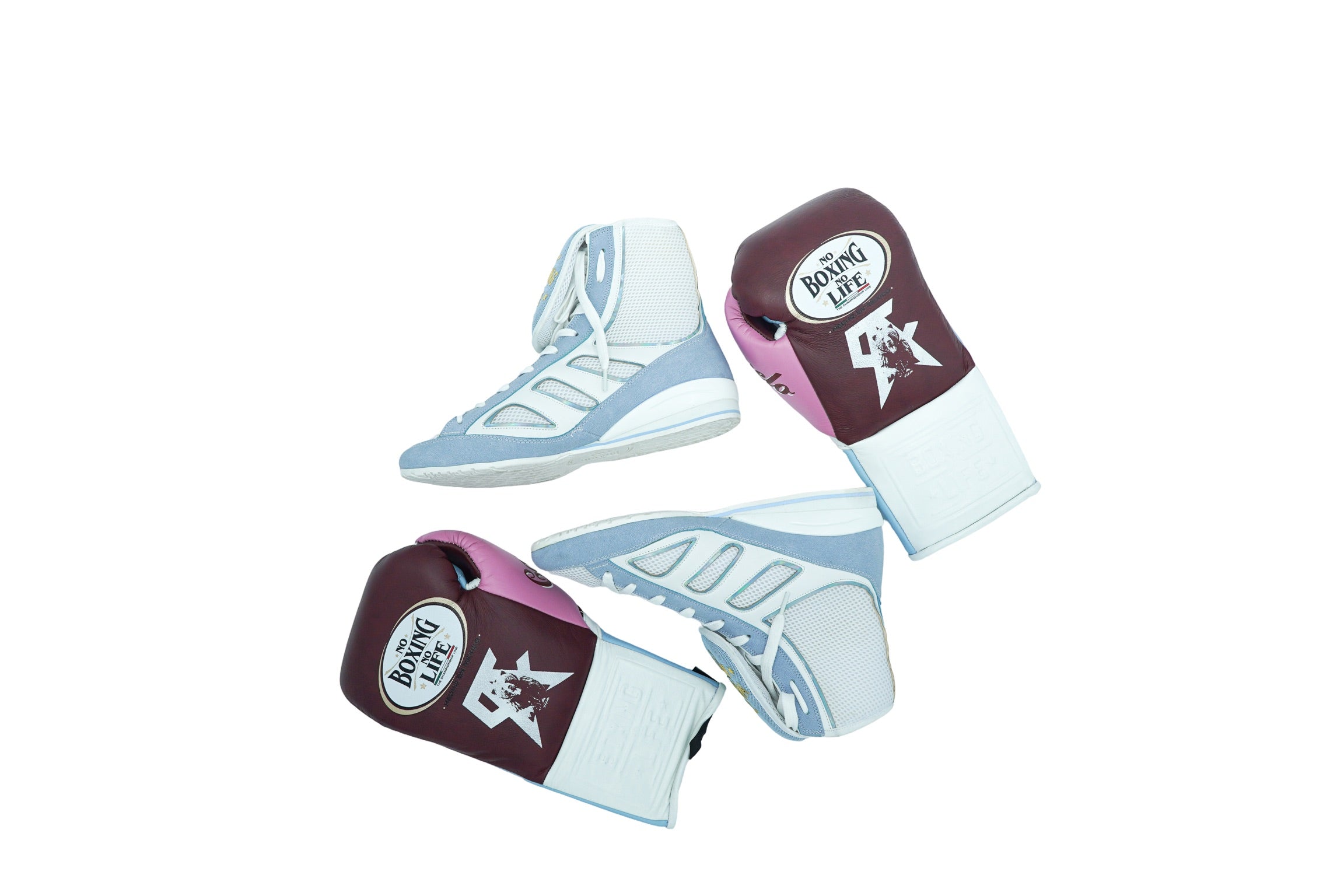 No Boxing No Life Training Gloves - Canelo Edition - Burgundy/ White/ Pink/ Sky Blue