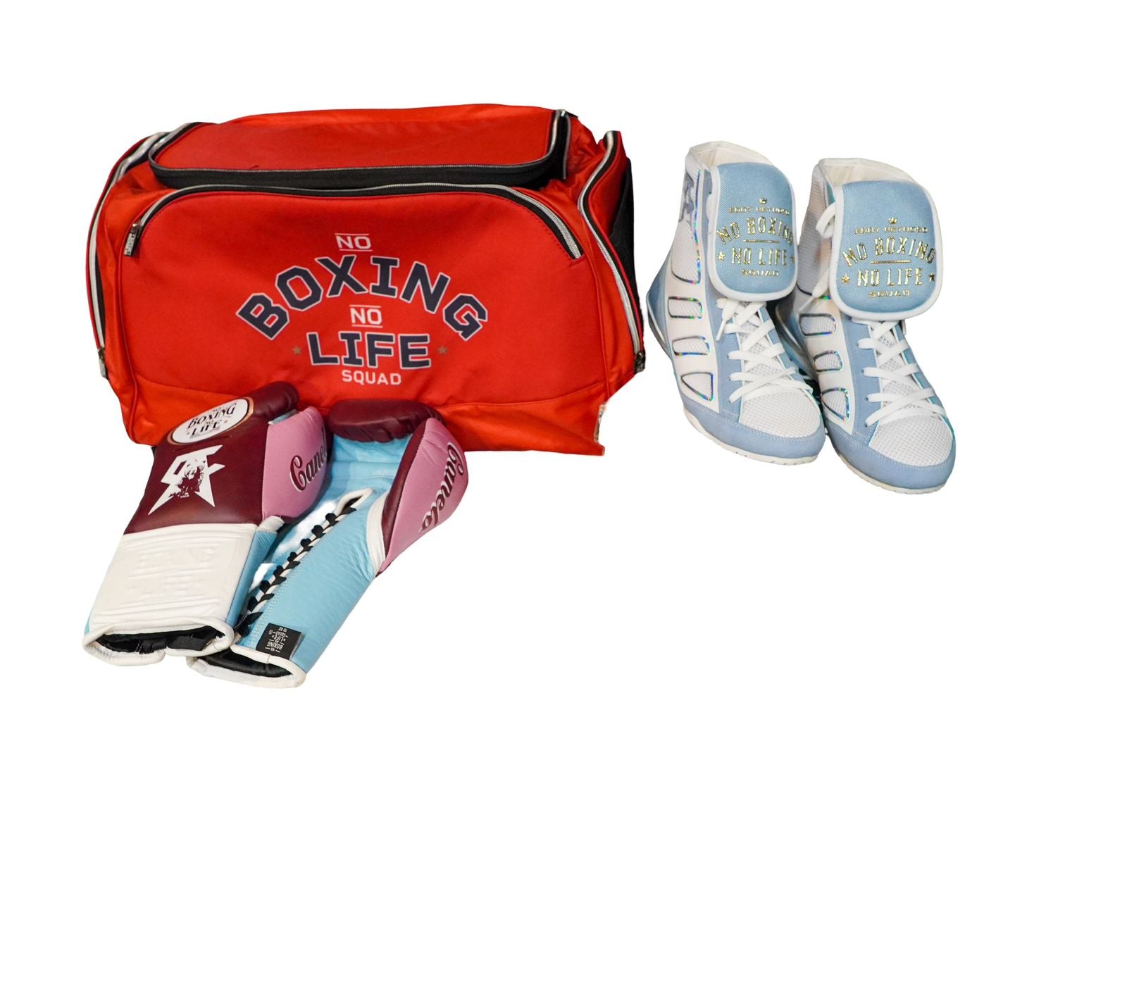 No Boxing No Life Kit - Burgundy/ White/ Pink/ Sky Blue - Sports Bag Red