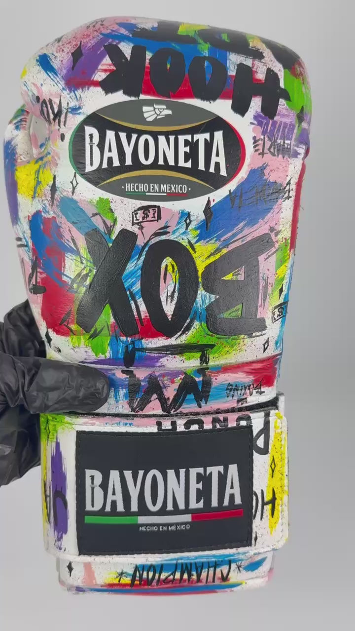 Bayoneta Premium Multilayer Horse Hair Gloves - Exclusive Custom Urban Art “Boxing” Hand Painted - White
