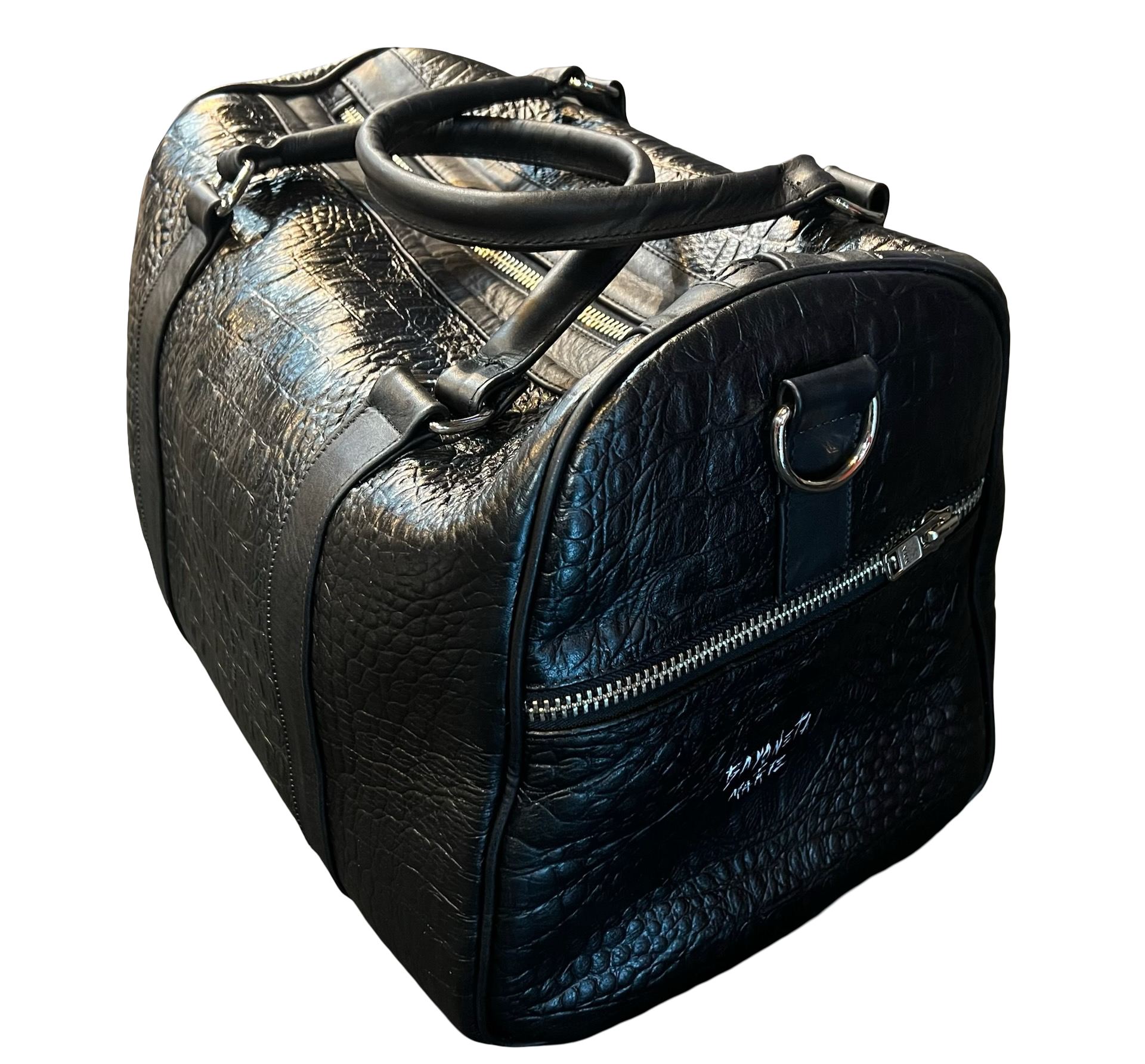 Bayoneta Sports Bag - Mini, made from high quality cowhide leather with a sleek crocodile finish.