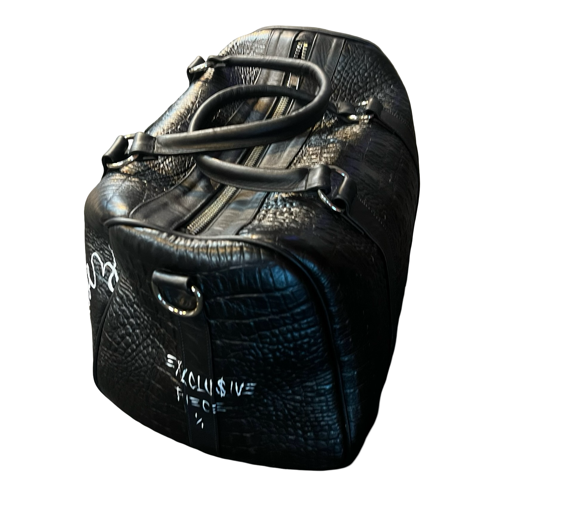 Indulge in luxury and sport in style with the Bayoneta Sports Bag - Mini. featuring the iconic Julio Cesar Chavez design. With a special hand painted details, this luxury piece of art will turn heads and inspire strong emotions. Make a statement with this custom bag perfect for any sports enthusiast!